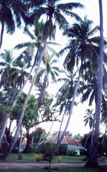プレ やしの木陰に点在する テレビ,クーラーなし、雨が降り 2時間ほど 停電してローソク の貸し出しがあった,皆なれているようでした。