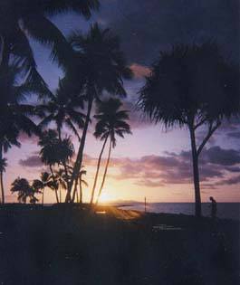 マナ島北海岸 自然に溶け込んだ造作物,朝の海岸は気持ち良かった。