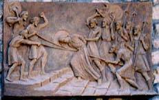 エルサレムの各所に、壁画やレリーフが飾られている ![]() |