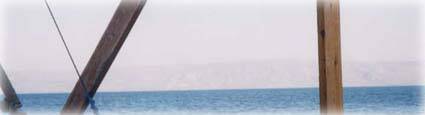 | ガリラヤ湖上に、イエスの時代に使用されていた木造船を再現した観光船で乗り出し、船上から湖岸を眺めた。 | |