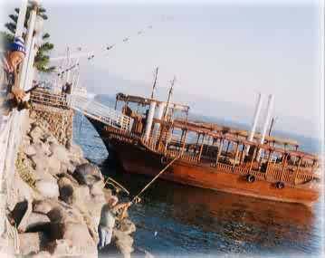 イエスの時代に使われていた船を再現した。湖の船に乗り、ガリラヤ湖を半周した。