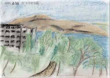 ガリラヤ湖の周辺海岸で、朝早くから魚つりを楽しんでいる人達を見かけた。生活のためか毎日来ているようだ。三方に出た大きな釣りバリだけで釣っている。エサも重りもなし、魚のいるポイントに投げ込んで、しばらくしたら勢いよくグイと引き上げると魚がかかっている。セント・ピーターフィッシュ(MOSAT)がおもしろいように釣れていた。