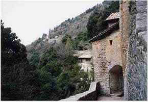 | ロッカ・マジョーレ山中の宗道場、山の洞窟に住居、食堂、礼拝堂などが、造られ、山全体が霊に満たされているようでした。少し涼しい所で日本の山門のようでした。(大声禁止)聖マリアノ教会 細い道の終わりにあった。 |