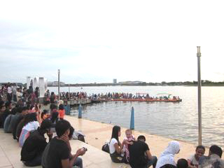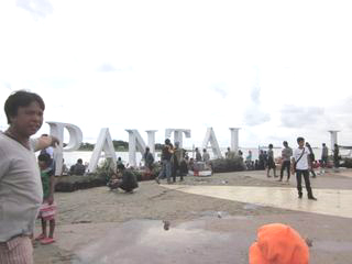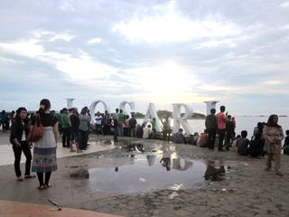 PANTAI海岸は、マカッサルの南にある観光地?でした。新年だからとは言えないくらいゆったりとした多くの人にあふれていました。(日没を待っていました。) 結局、日没は見えませんでした。 |