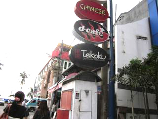 b.PANTAI周辺 通りに沿って、店が並んでいました。自動車とバイクがごった返していました。 当然人も!! |