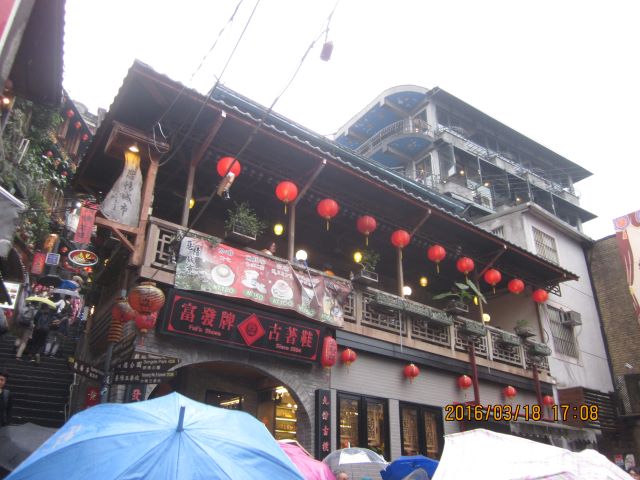 ![]() 雨の九ふん、狭い階段は傘いっぱい |