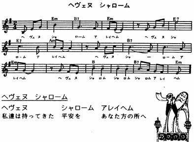 次は、ローマからイスラエルに行く途中の飛行機の中で、イスラエルの中高生と思われるグループに出会ったことです。約30人位の学生達は、イスラエルからヨーロッパ旅行の帰りでした。彼らの話しでは、「私達は『ガス室』を見てきた!。ショックでした。私のおじいちゃんがそこで亡くなった。」と話してくれました。彼らは、イスラエルの入植地に住んでいて、厳格なユダヤ教の教育を受けている学生です。飛行機がイスラエル(ベングリオン空港)に着陸すると同時に、「ヘヴェヌ シャローム」(私達はあなたの所に平安を持ってきた)というイスラエルソングを歌って飛行機の中が歌と手拍子で満たされました。イスラエルの民(ユダヤ人)が過去の長い苦しみの後、今祖国に足を踏み入れたことを喜んでいるようでした。入国手続きの合間も広場で、手をつないで歌(ヘヴェヌ シャローム)を歌い、踊っておりました。日本人にこんなことができるかな?